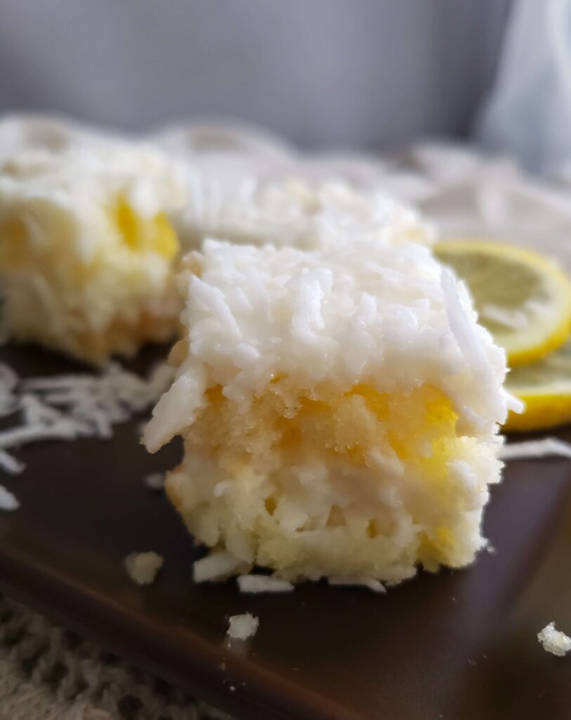 Crème Diplomate au coco, génoise (sans gluten) moelleuse imbubée de jus de citron